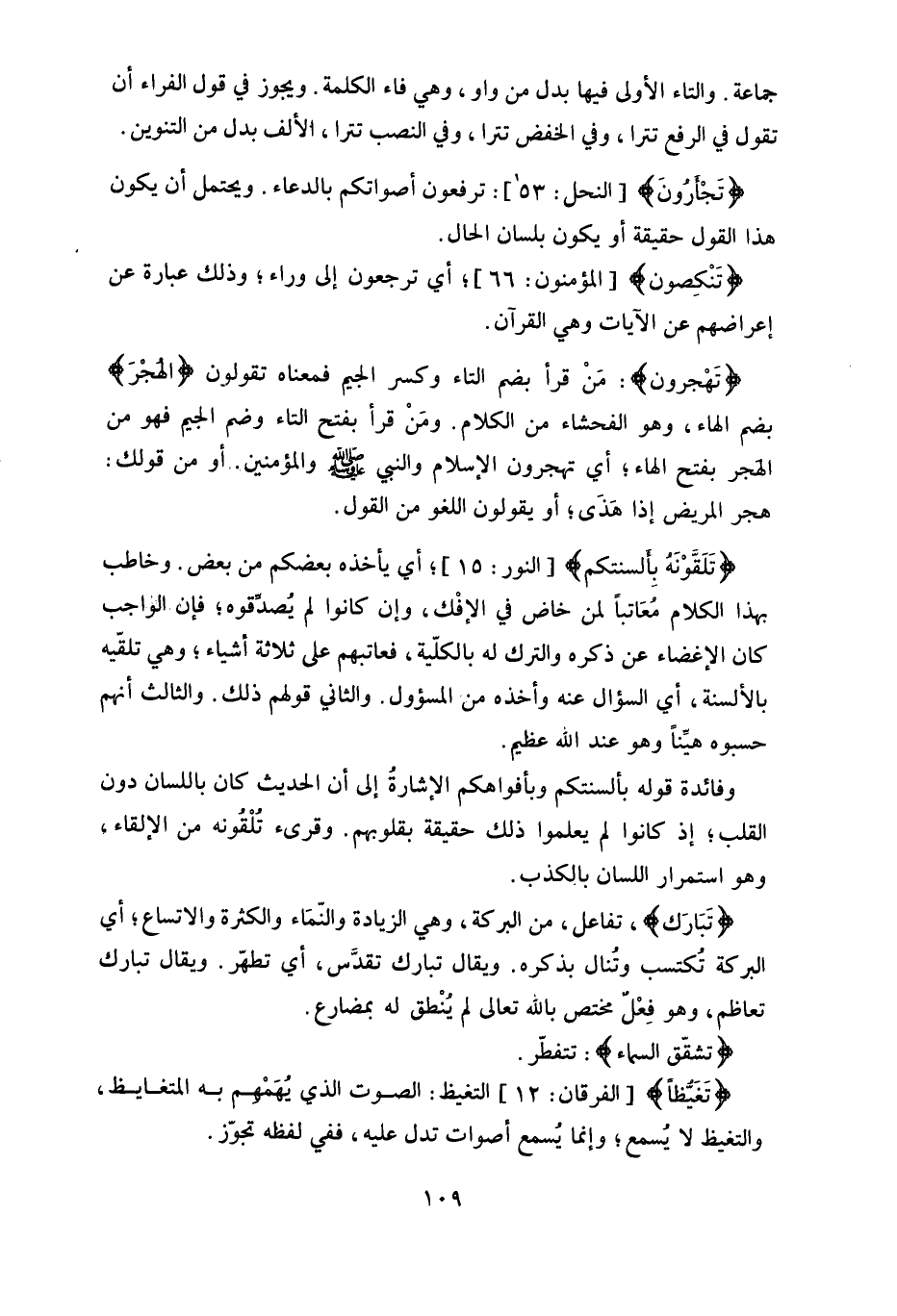 (تَهْجُرُونَ) : مَنْ قرأ بضم التاء وكسر الجيم فمعناه تقولون الهجْرَ