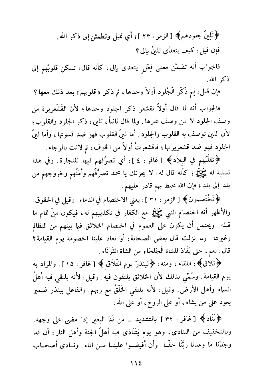 (تلاق) : اللقاء، ومنه: (لينذرَ يوم التّلاَق) .