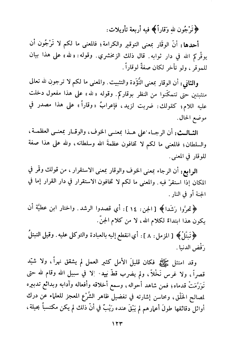 (تَرْجون للَهِ وَقاراً) فيه أربعة تأويلات: