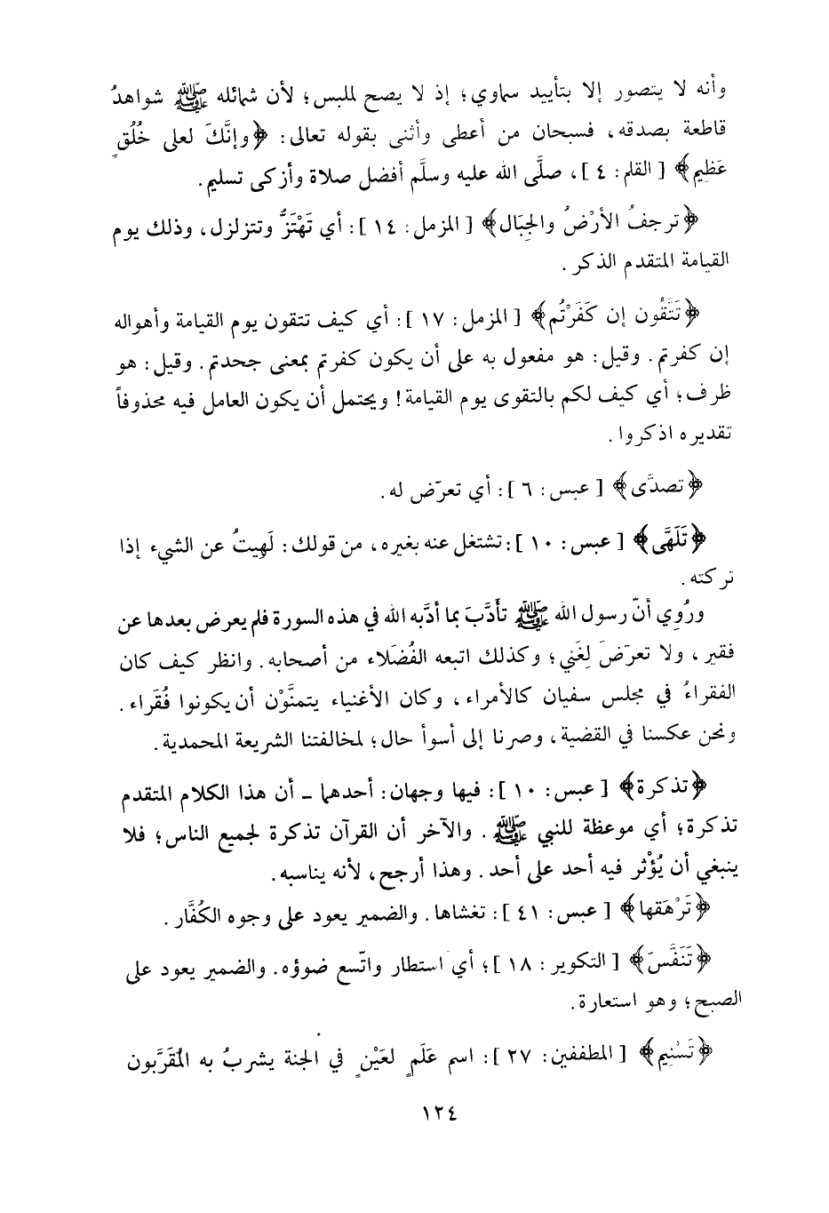 وأنه لا يتصور إلا بتأييد سماوي، إذ لا صمح لملبس، لأن شمائله - صلى الله عليه وسلم - شواهد قاطعة بصدقه، فسبحان من أعطى وأثنى بقوله تعالى: (وَإِنَّكَ لَعَلَى خُلُقٍ عَظِيمٍ) ، صلَّى الله عليه وسلَّم أفضل صلاة وأزكى تسليم.