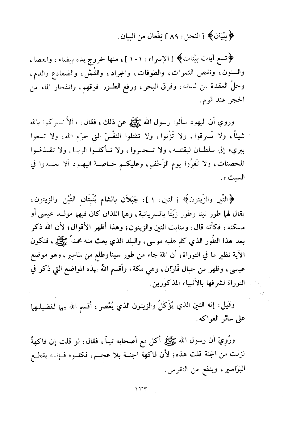 الآية نظير ما في التوراة، أن اللهَ جاء من طور سينا وطلع من ساعير، وهو موضع عيسى - صلى الله عليه وسلم - وظههر من جبال فَارَان وهي مكة، وأقسم الله: بهذه المواضع التي ذكر في التوراة لشرفها بالأنبياء المذكورين.