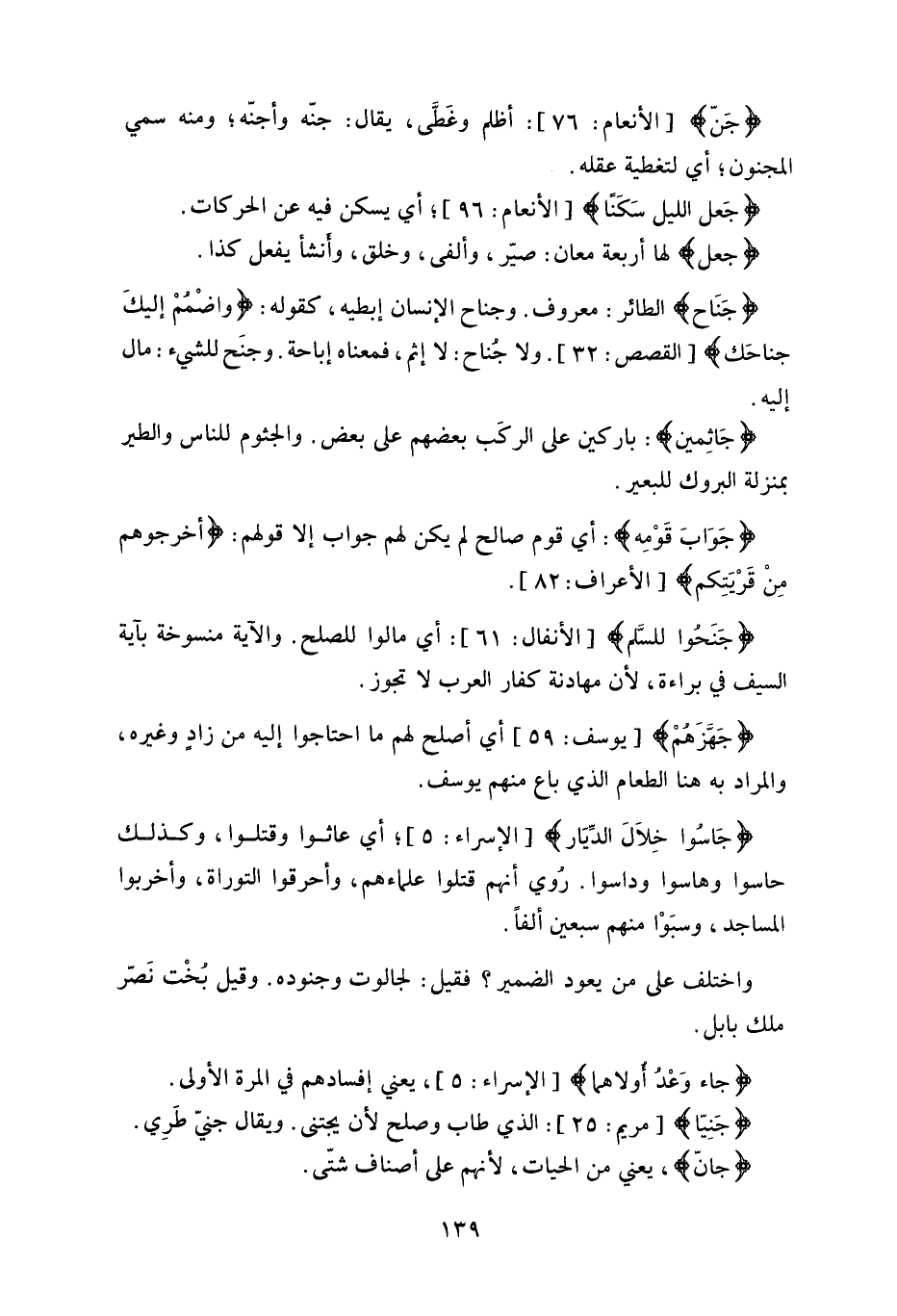 (جَنَّ) : أظلم وغَطَى، يقال: جنّه وأجنّه، ومنه سمي