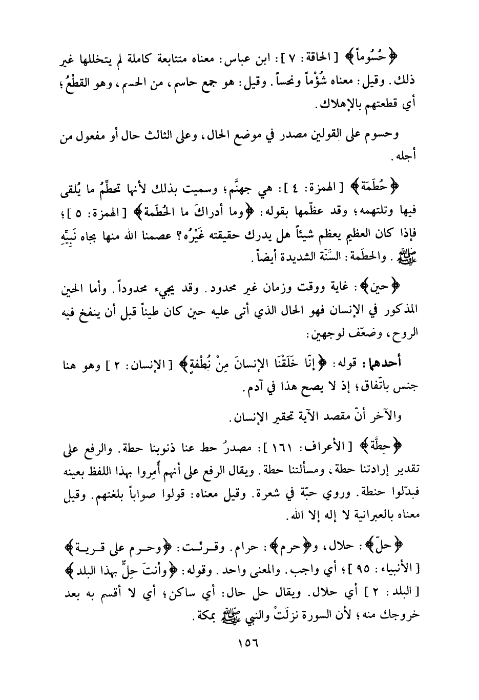 (حُسُوماً) : ابن عباس: معناه متتابعة كاملة لم يتخللها غير