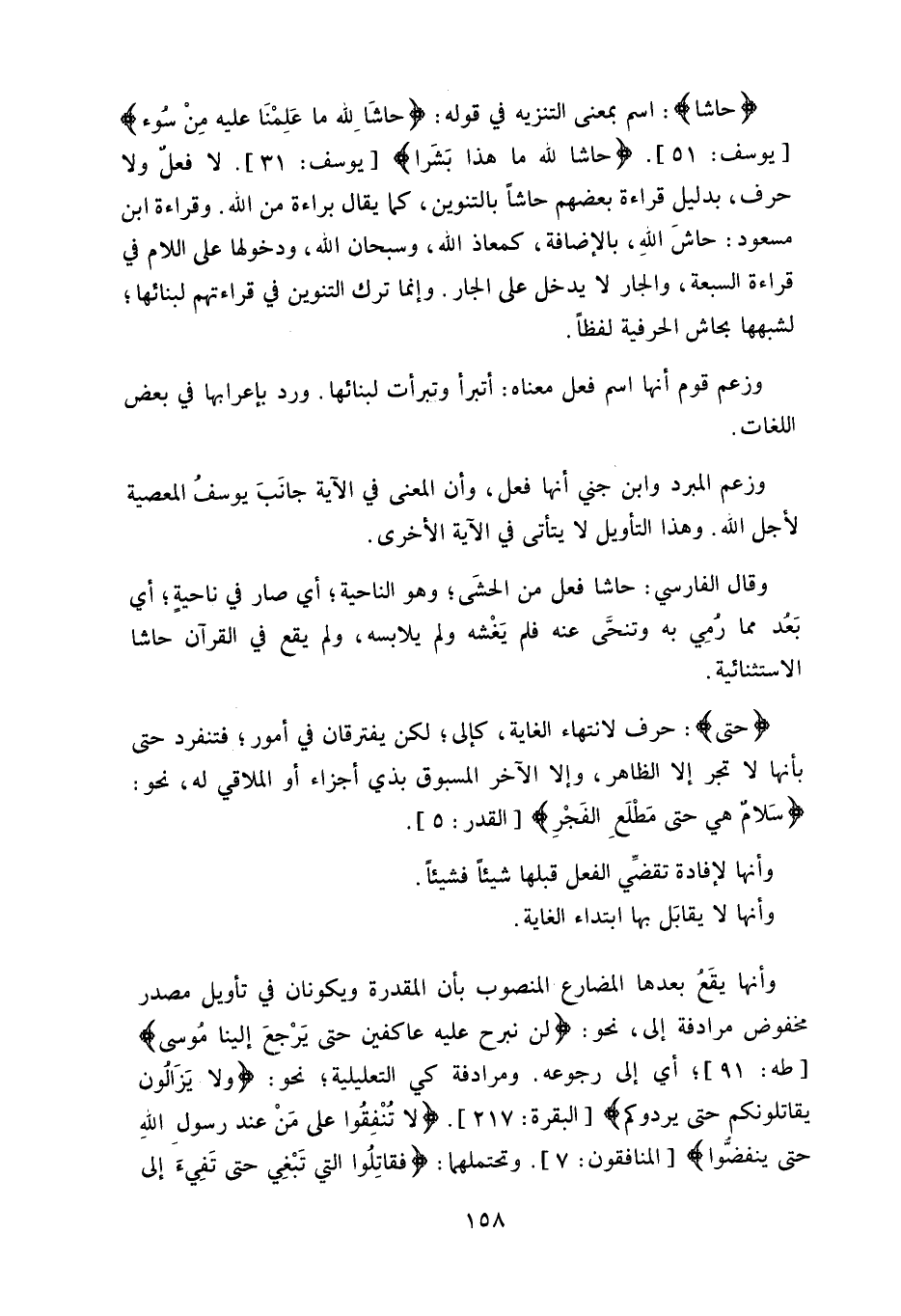 ومرادفة) كي التعليلية، نحو: (وَلَا يَزَالُونَ يُقَاتِلُونَكُمْ حَتَّى يَرُدُّوكُمْ) .