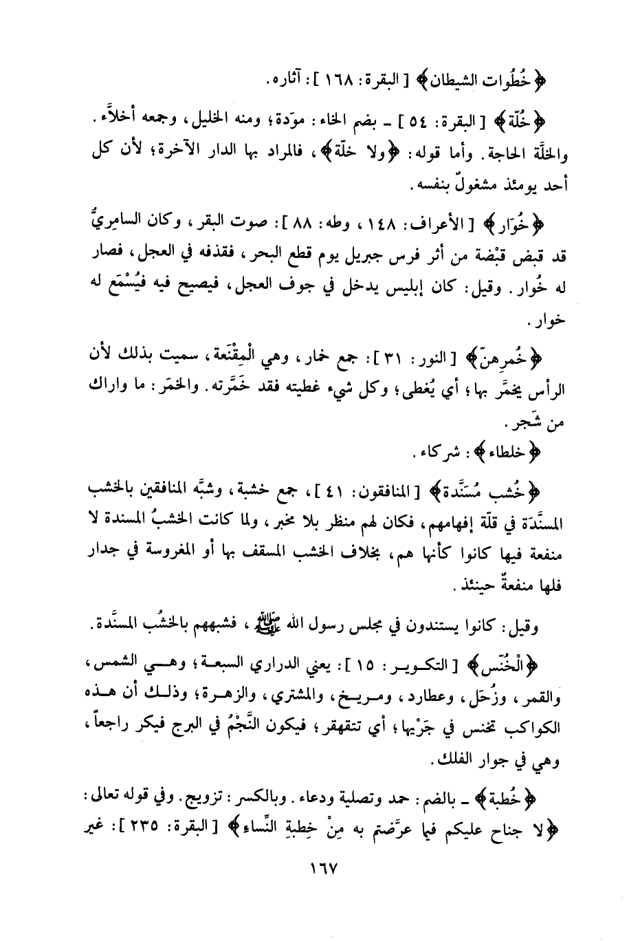 (الْخُنَّس) : يعني الدراري السبعة، وهي الشمس، والقمر، وزُحَل، وعطارد، ومريخ، والمشتري، والزهرة، وذلك أن هذه
