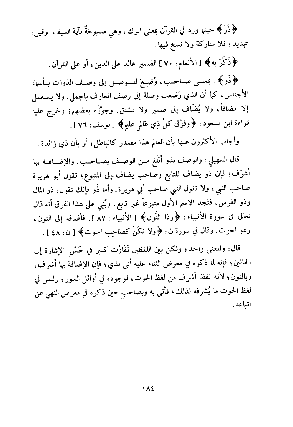 قال السهيلي: والوصف بذو أبْلَغ من الوصف بصاحب.