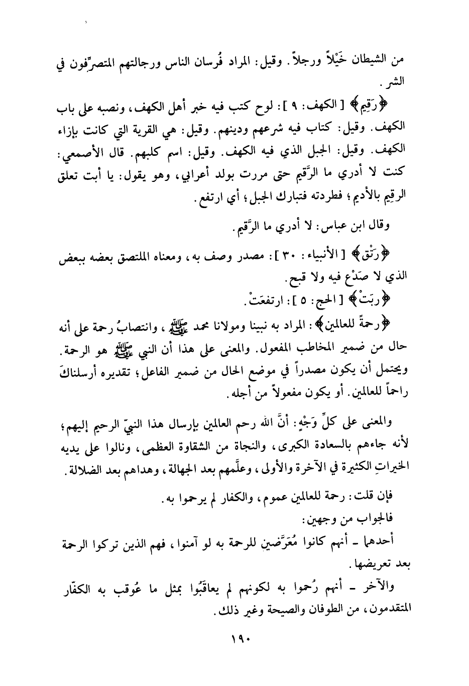 (رحمةً للعالمين) : المراد به نبينا ومولانا محمد - صلى الله عليه وسلم -، وانتصاب رحمة على أنه حال من ضمير المخاطب المفعول.
