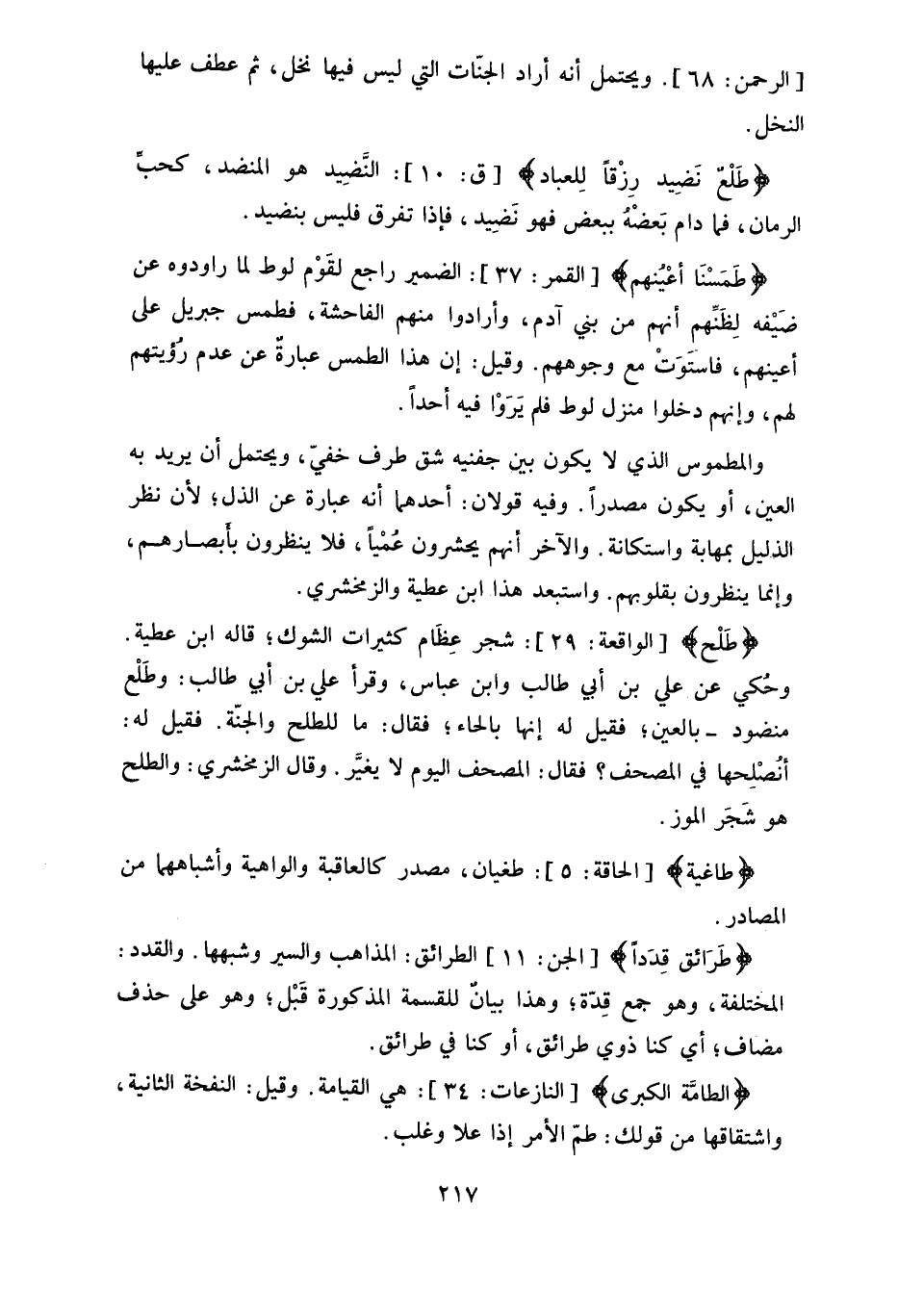 منضود - بالعين، فقيل له إنها بالحاء، فقال: ما للطلح والجنّة.