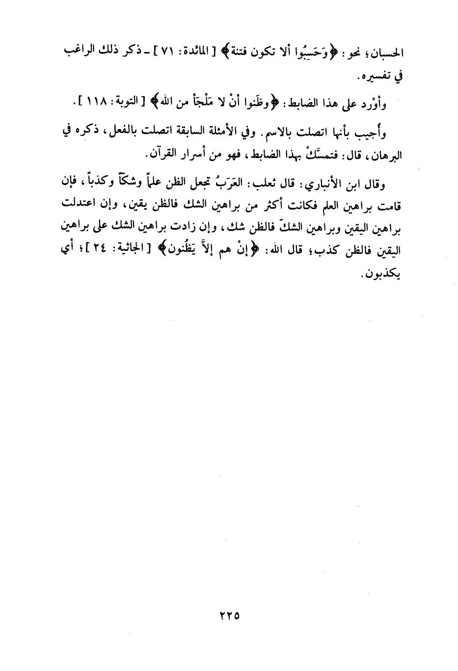 وقال ابن الأنباري: قال ثعلب: العَرَبُ تجعل الظن علماً وشكا وكذبا، فإن