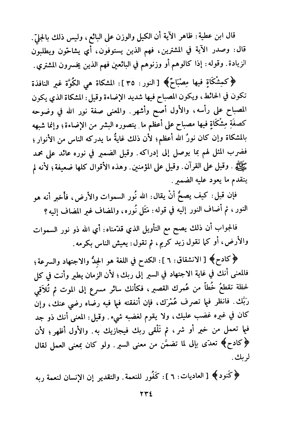 (كمِشْكَاةٍ فيها مِصْبَاح) : المشكاة هي الكُوَّة غير النافذة