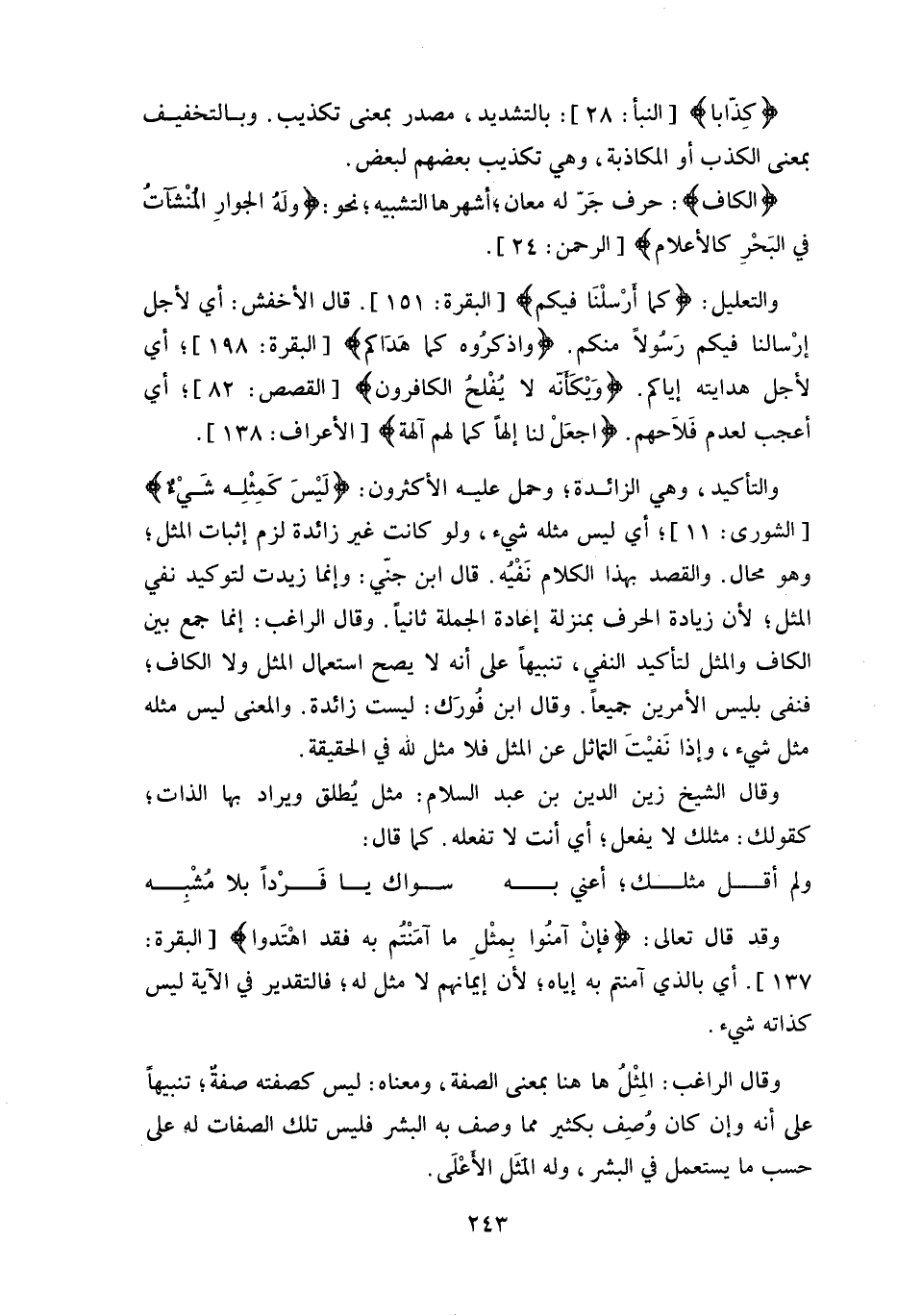 وقال الشيخ زين الدين بن عبد السلام: مثل يُطلق ويراد بها الذات.