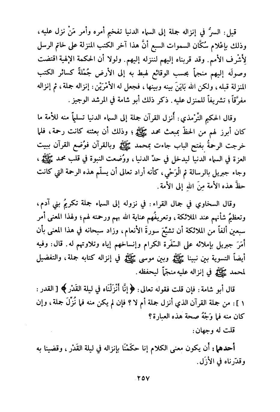 قال أبو شامة: فإن قلت فقوله تعالى: (إنَّا أنْزَلْنَاه في ليلة القَدْر) .