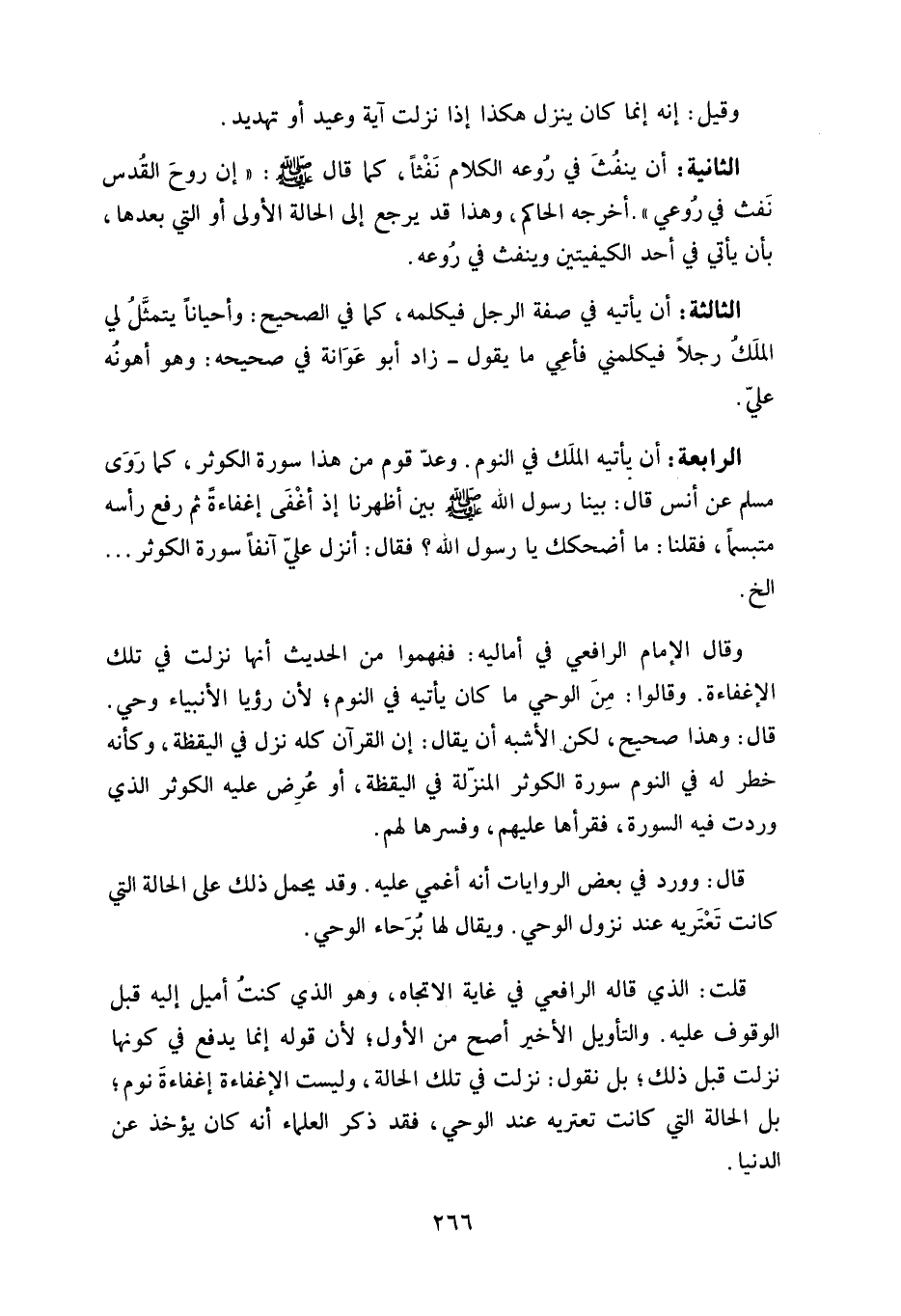 قال: وهذا صحيح، لكن الأشبه أن يقال: إن القرآن كله نزل في اليقظة، وكأنه خطر له في النوم سورة الكوثر المنزّلة في اليقظة، أو عُرِض عليه الكوْثَر الذي وردت فيه السورة، فقرأها عليهم، وفسرها لهم.