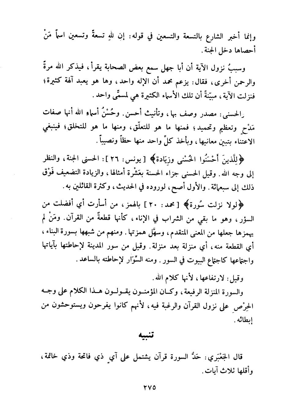 قال الجَعْبَري: حَدّ السورة قرآن يشتمل على آي ذي فاتحة وذي خاتمة.