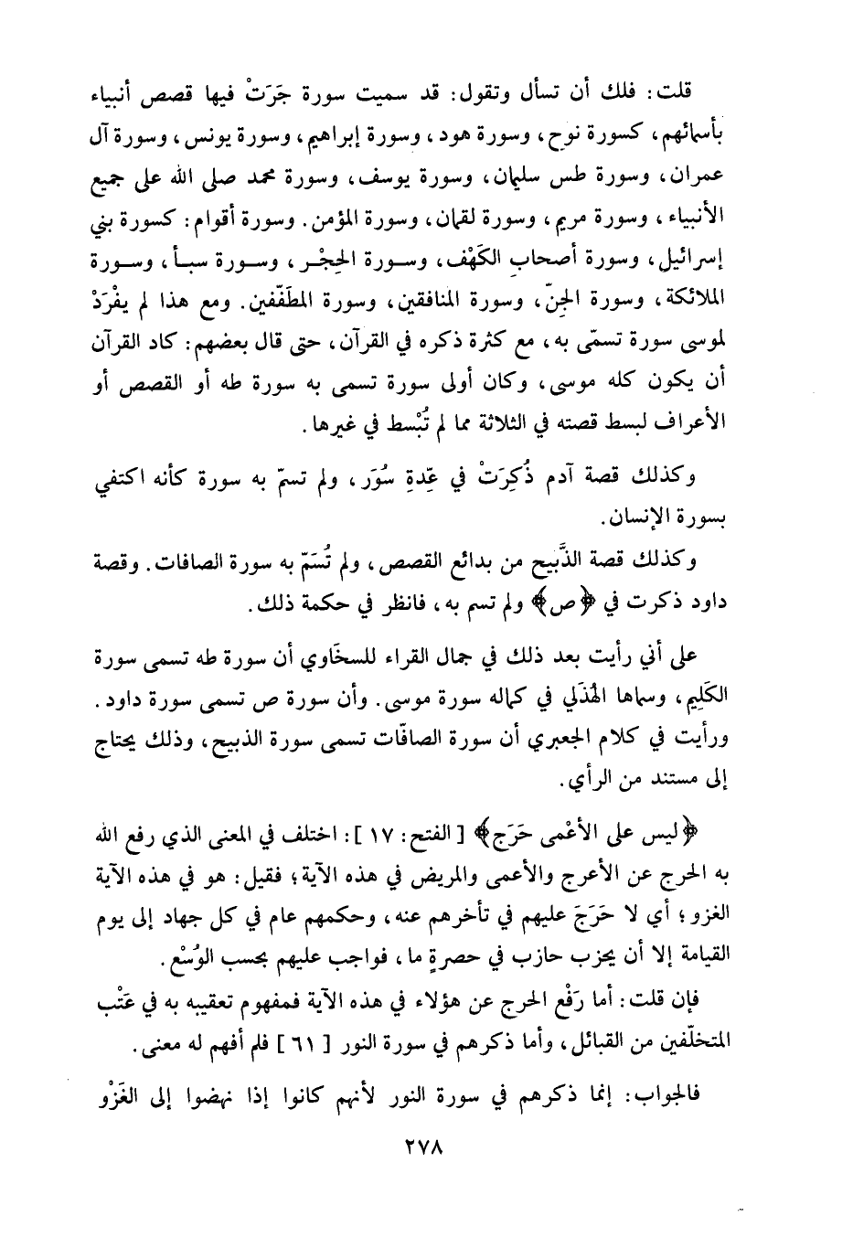 قلت: فلك أن تسأل وتقول: قد سميت سورة جَرَتْ فيها قصص أنبياء