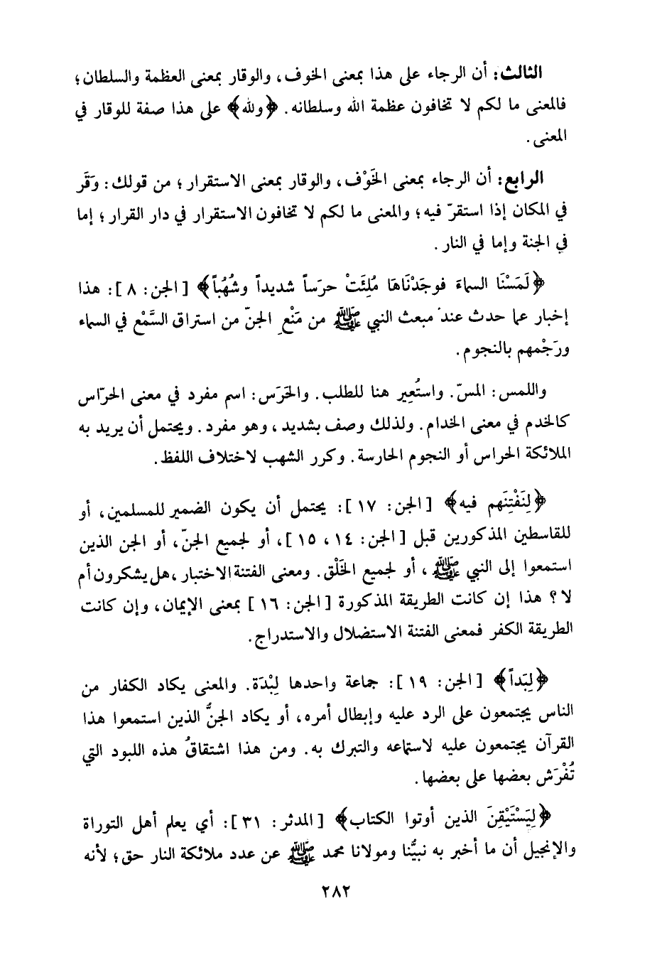 (لَمَسْنَا السَّمَاءَ فَوَجَدْنَاهَا مُلِئَتْ حَرَسًا شَدِيدًا وَشُهُبًا) : هذا إخبار عما حدث عندْ مبعث النبي - صلى الله عليه وسلم - من مَنعِْ الجنّ من استراق السمعْ في السماء ورَجْمهم بالنجوم.