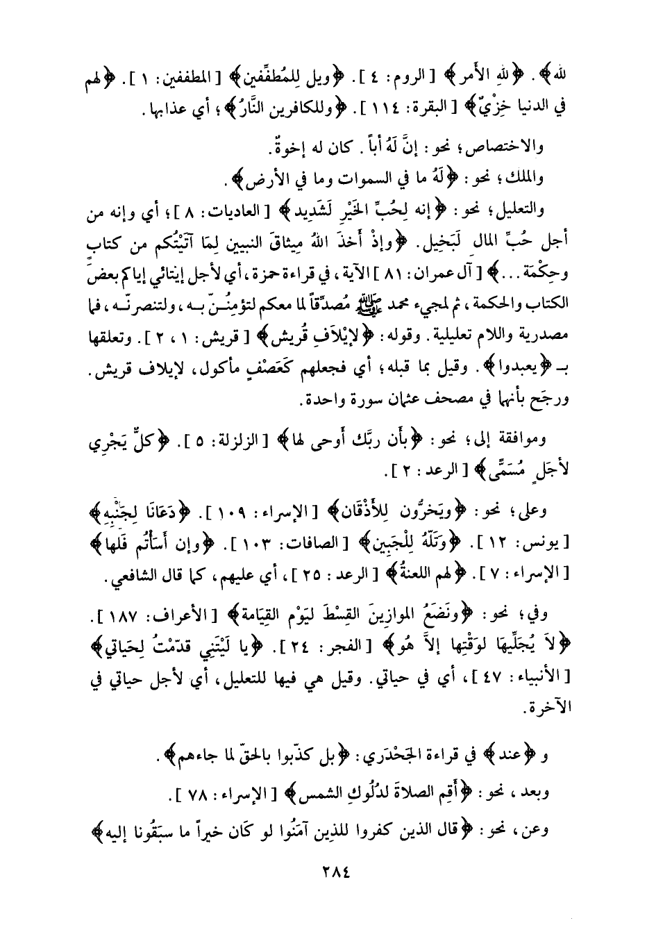 والتعليل، نحو: (إنه لِحبِّ الخَيْرِ لَشَدِيد) ، أي وإنه من