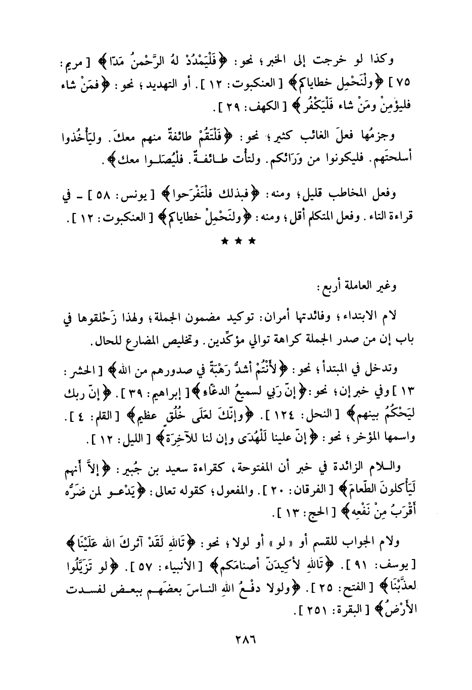 وجزمها فعلَ الغائب كثير، نحو: (فَلْتَقُمْ طائفةٌ منهم معكَ وليَأخذوا