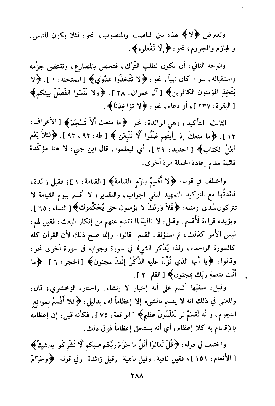واختلف في قوله: (قُلْ تَعَالَوْا أَتْلُ مَا حَرَّمَ رَبُّكُمْ عَلَيْكُمْ أَلَّا تُشْرِكُوا بِهِ شَيْئًا) ، فقيل نافية. وقيل ناهية. وقيل زائدة.