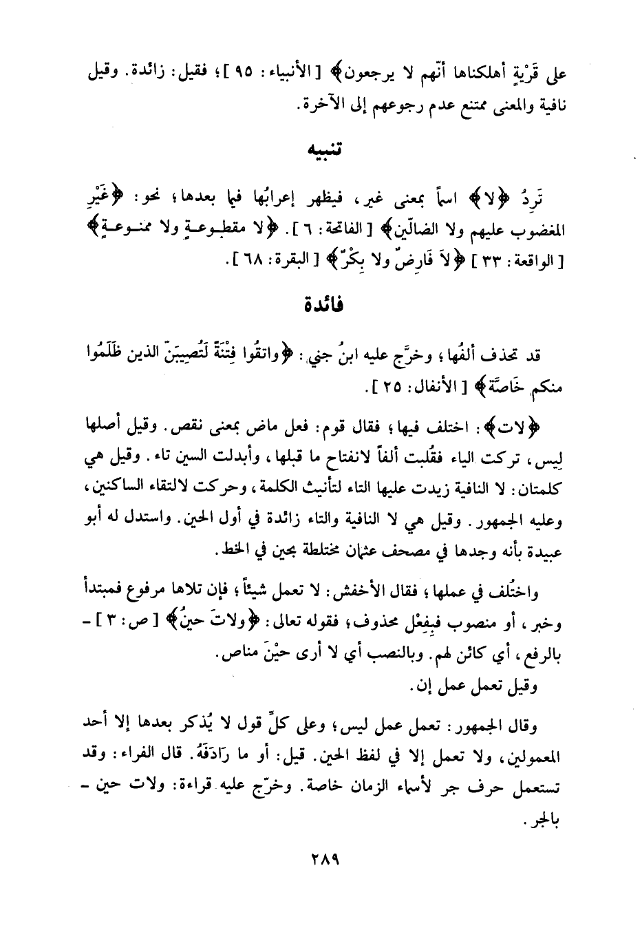 المغضوب عليهم ولا الضالّين) ، (لا مقطوعة ولا ممنوعةٍ) ، (لاَ فَارِضٌ ولا بِكرٌ) .