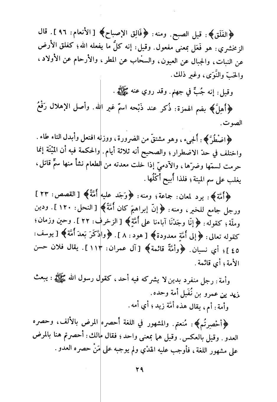 (الفَلَق) : قيل الصبح. ومنه: (فَالِق الإصباح)