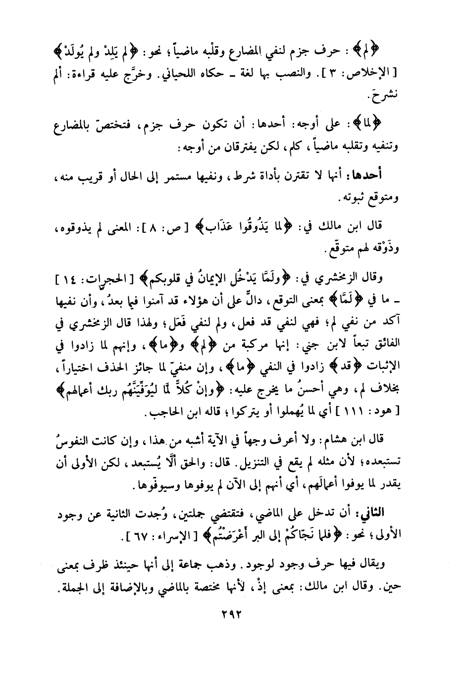 بخلاف لم، وهي أحسنُ ما يخرج عليه: (وإنْ كُلاًّ لمَا ليُوَفيَنَّهُم ربك أعمالهم) ، أي لما يُهملوا أو يتركوا، قاله ابن الحاجب.