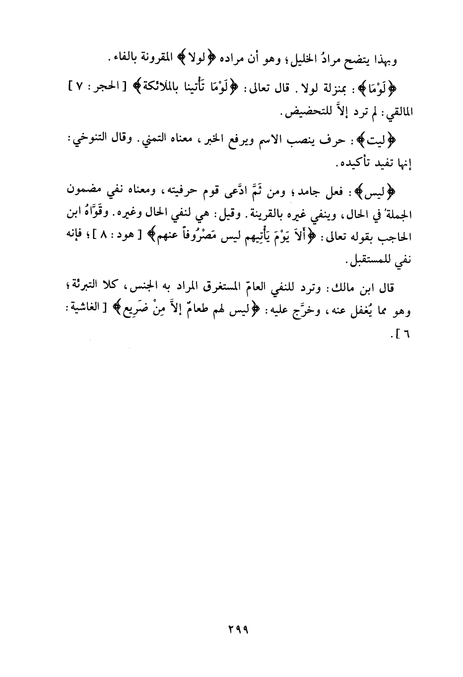 وقَوَّاة ابن الحاجب بقوله تعالى: (أَلَا يَوْمَ يَأْتِيهِمْ لَيْسَ مَصْرُوفًا عَنْهُمْ) ، فإنه