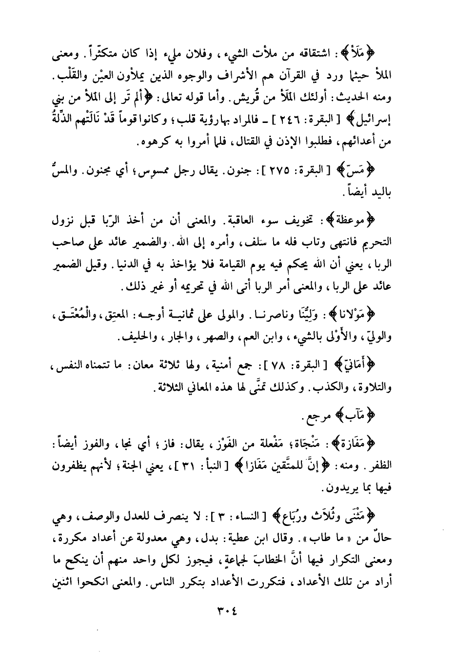 (مَلَأ) : اشتقاقه من ملأت الشيء، وفلان مليء إذا كان متكثرا.