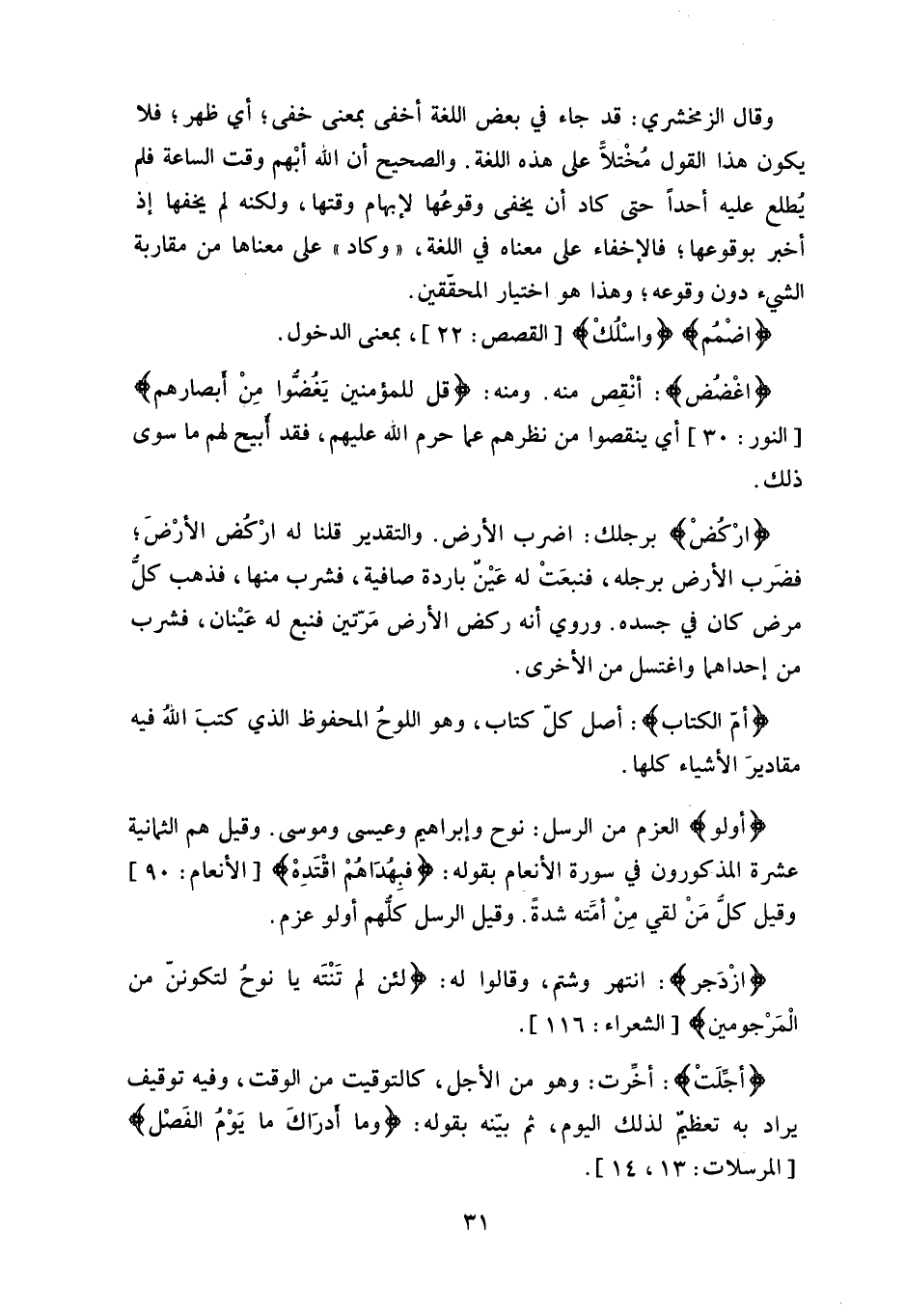 والصحيح أن الله أبْهم وقت الساعة فلم يطلع عليه أحدًا حتى كاد أن يحفى وقوعها لإبهام وقتها، ولكنه لم يخفها إذ أخبر بوقوعها، فالإخفاء على معناه في اللغة، " وكاد " على معناها من مقاربة