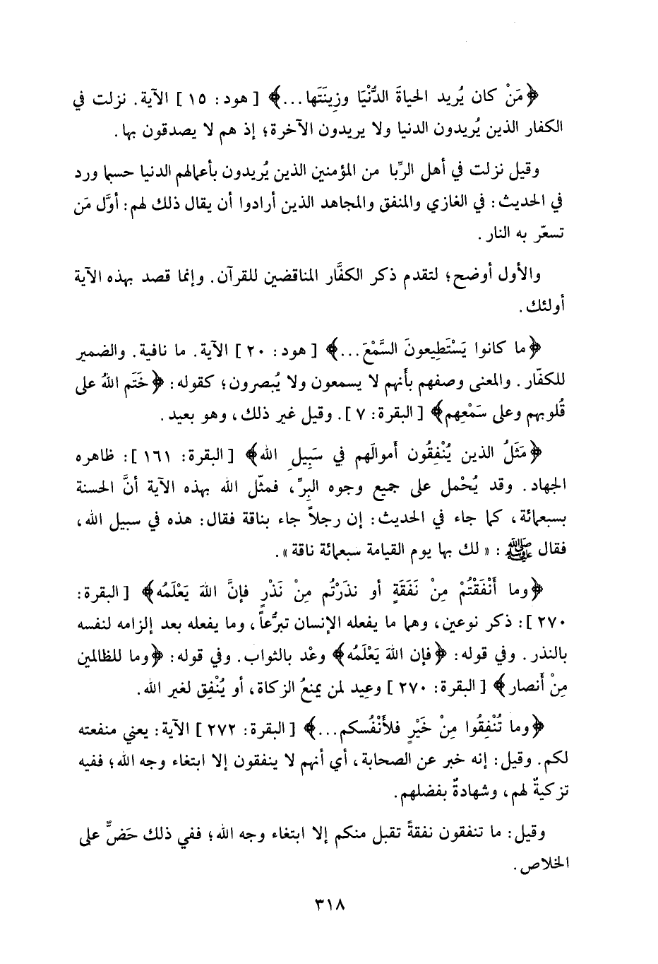 (مَنْ كان يريد الحياةَ الدّنْيَا وزِينَتَها) الآية.