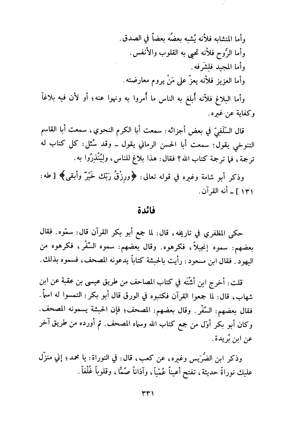 حكى المظفري في تاريخه، قال: لما جمع أبو بكر القرآن قال: سمّوه.
