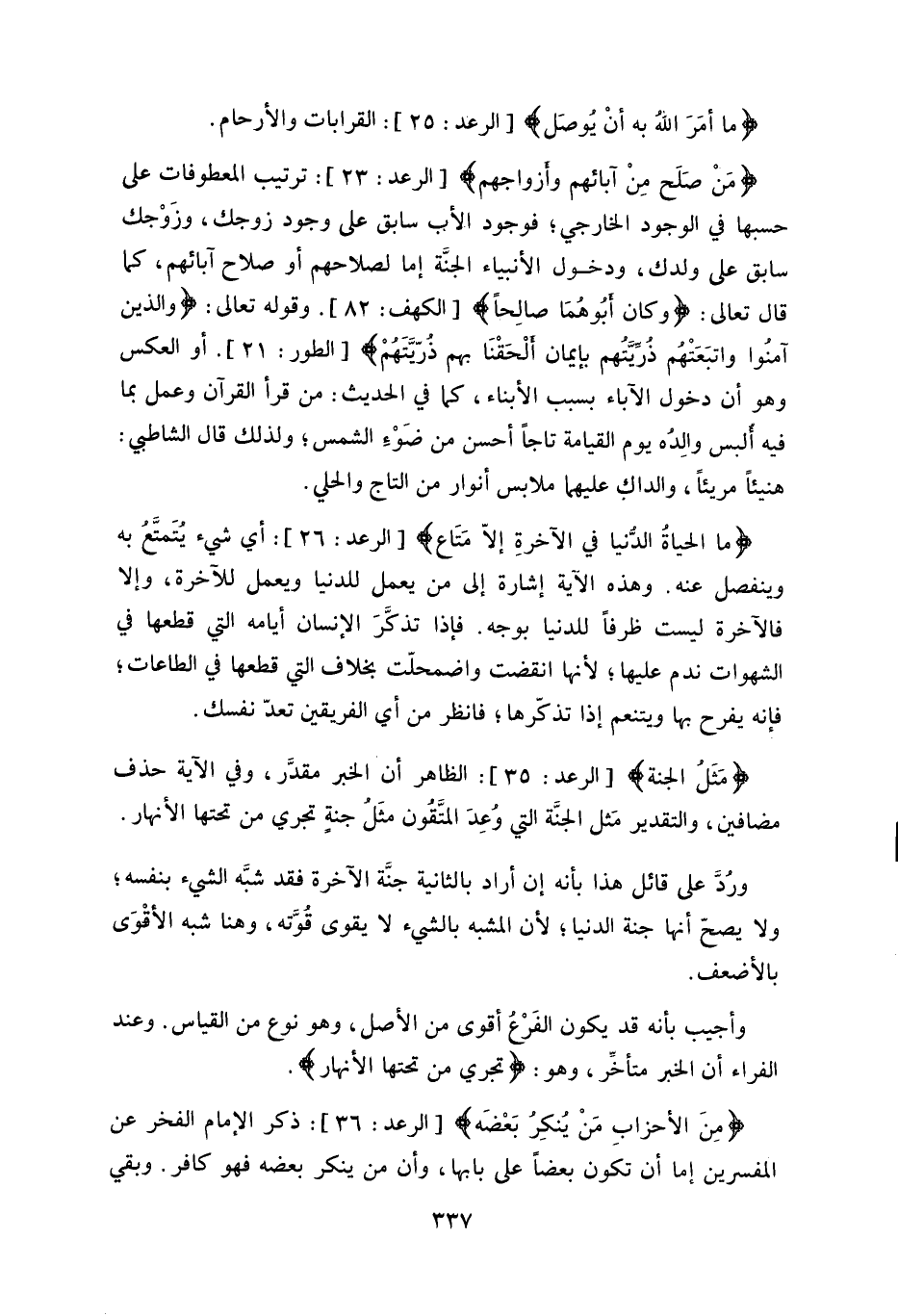 وقوله تعالى: (وَالَّذِينَ آمَنُوا وَاتَّبَعَتْهُمْ ذُرِّيَّتُهُمْ بِإِيمَانٍ أَلْحَقْنَا بِهِمْ ذُرِّيَّتَهُمْ) .