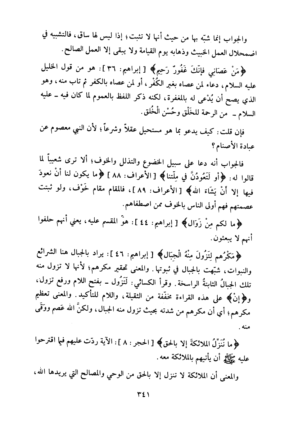 قالوا له: (أو لَتَعودُنَّ في مِلّتنا) ، قال (ما يكون لنا أنْ نعودَ فيها إلا أنْ يشَاءَ الله) ، فالمقام مقام خَوْف، ولو ثبتت عصمتهم فهم أولى الناس بالخوف ممن اصطفاهم.