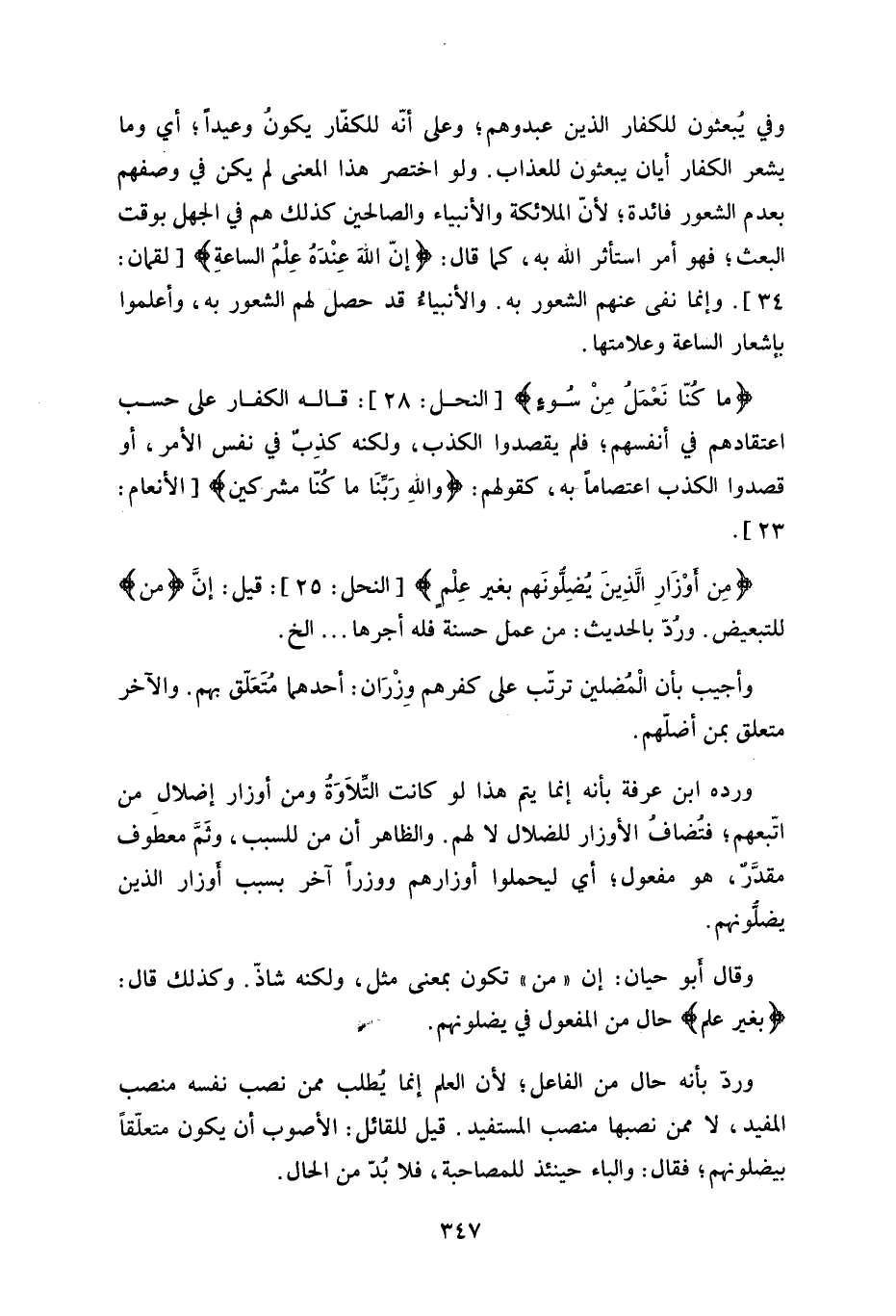ورده ابن عرفة بأنه إنما يتم هذا لو كانت التِّلاَوَة ومن أوزار إضلال من