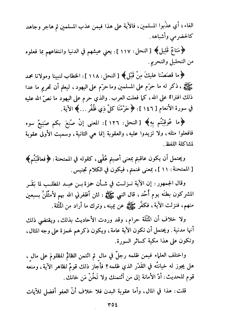 قلت: هذا في المال، وأما عقوبة البدن فلا خلاف أنَّ العفو أفضل للآيات