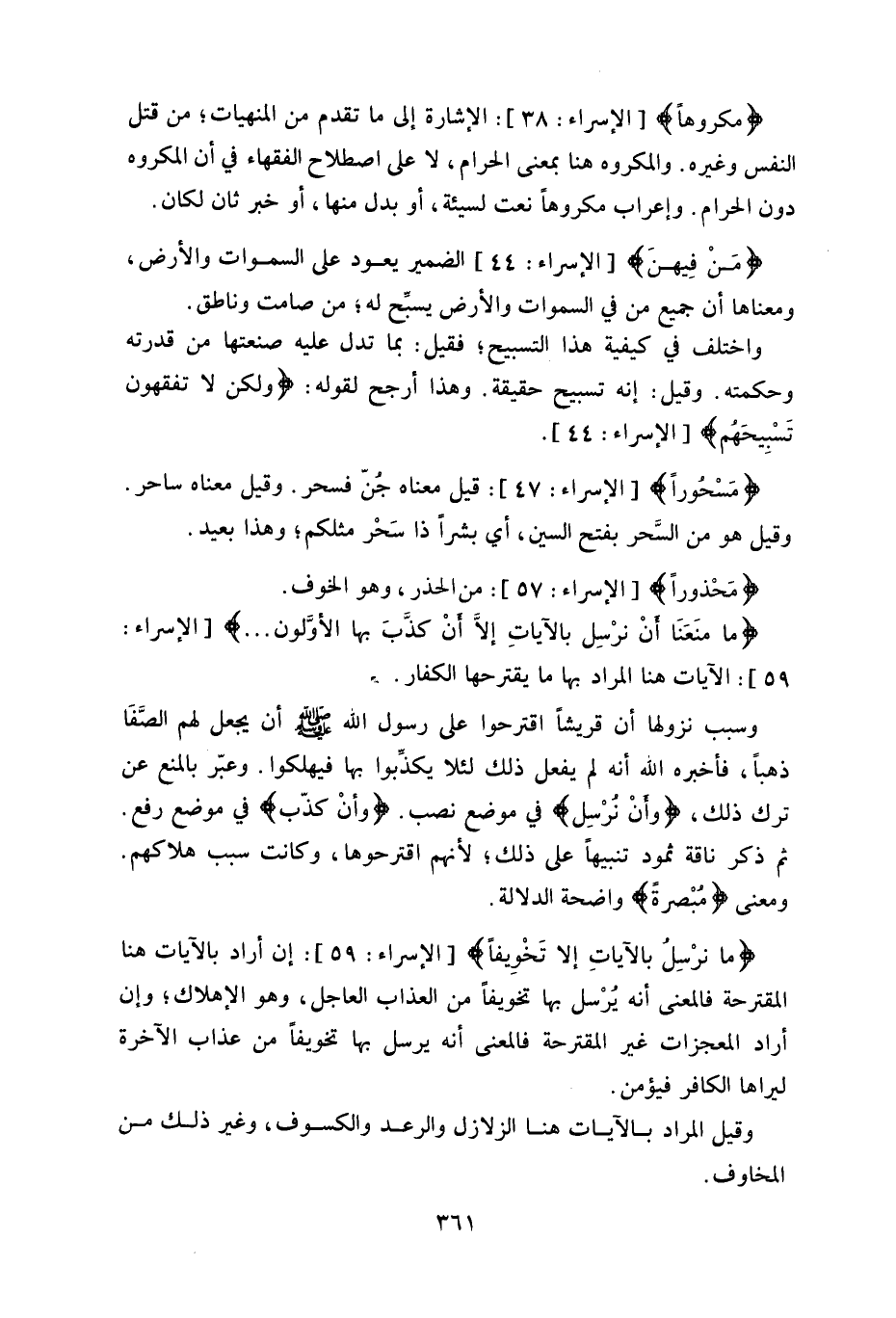 وإعراب (مكروها) نعت لسيئة، أو بدل منها، أو خبر ثان لكان.