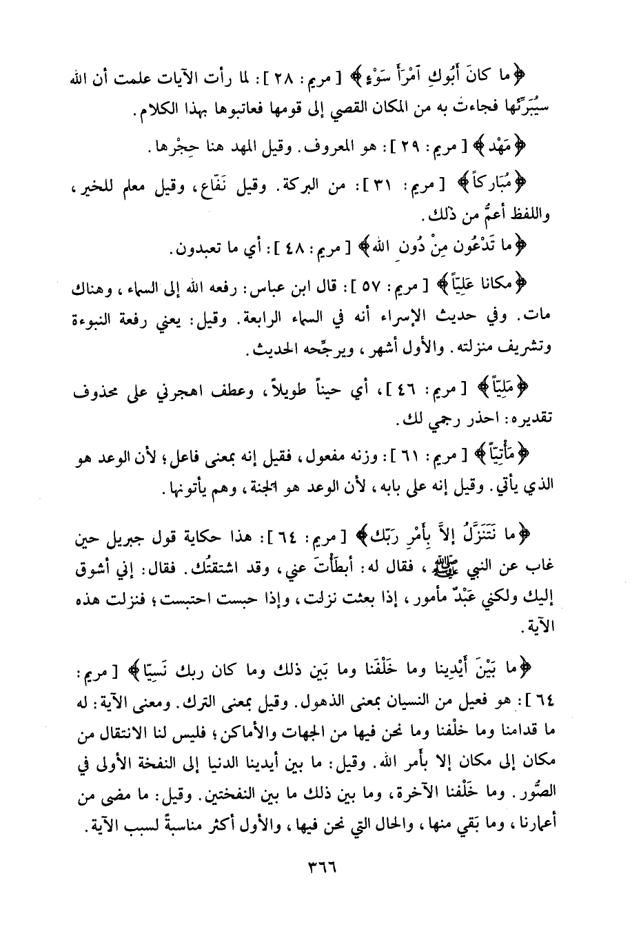 (ما بَيْنَ أيْدِينا وما خَلْفَنا وما بَين ذلك وما كان ربك نَسِيّا) .