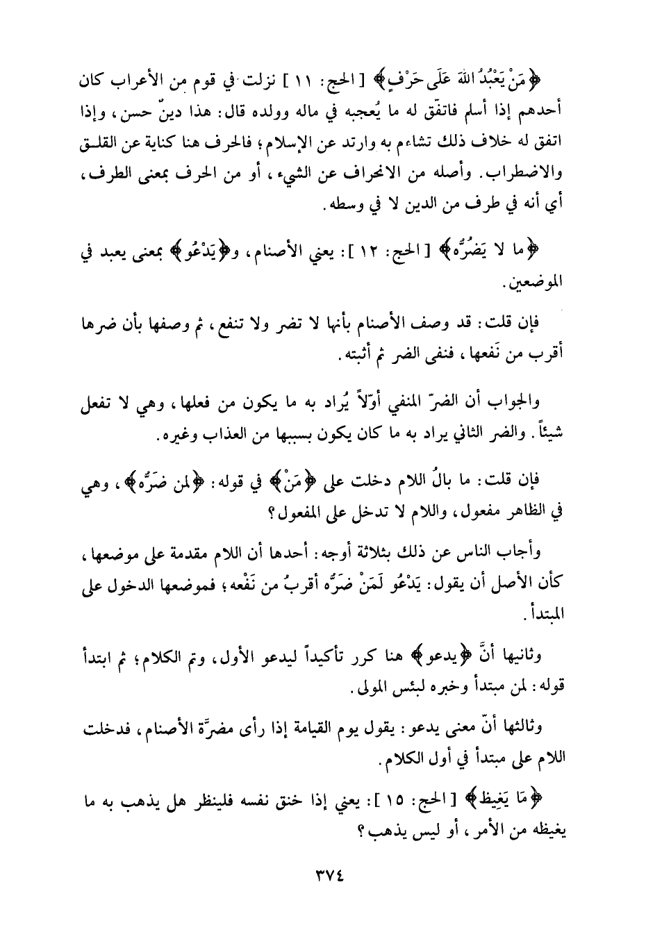 (مَنْ يَعْبُدُ اللَّهَ عَلَى حَرْفٍ) .