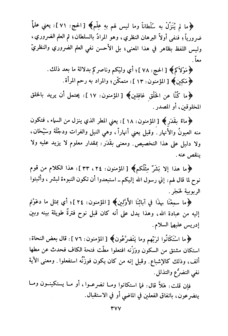 يعني علماً ضرورياً، فنفى أولاً البرهان النظري، وهو المراد بالسلطان، ثم العلم الضروري، وليس اللفظ بظاهر في هذا المعنى، بل الأحسن نفي العلم الضروري والنظريّ معاً.