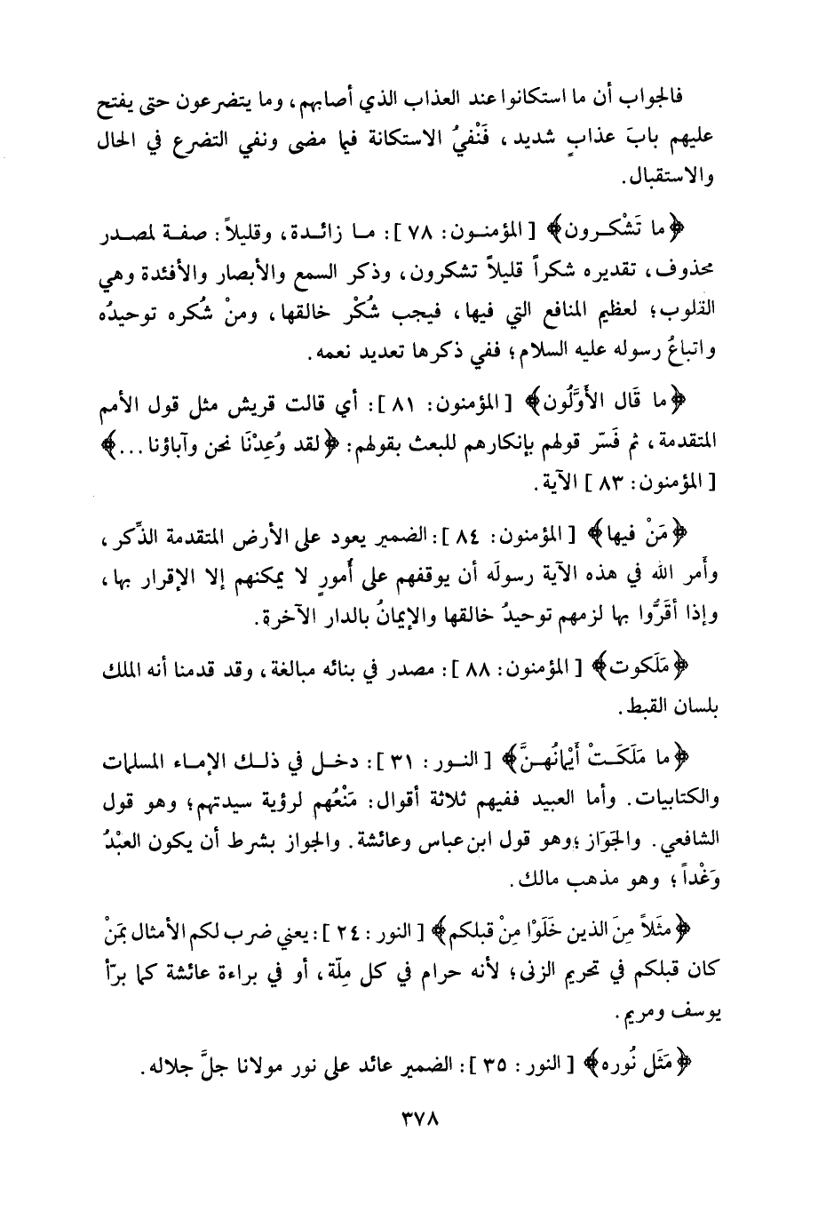 الضمير عائد على نور مولانا جلَّ جلاله.