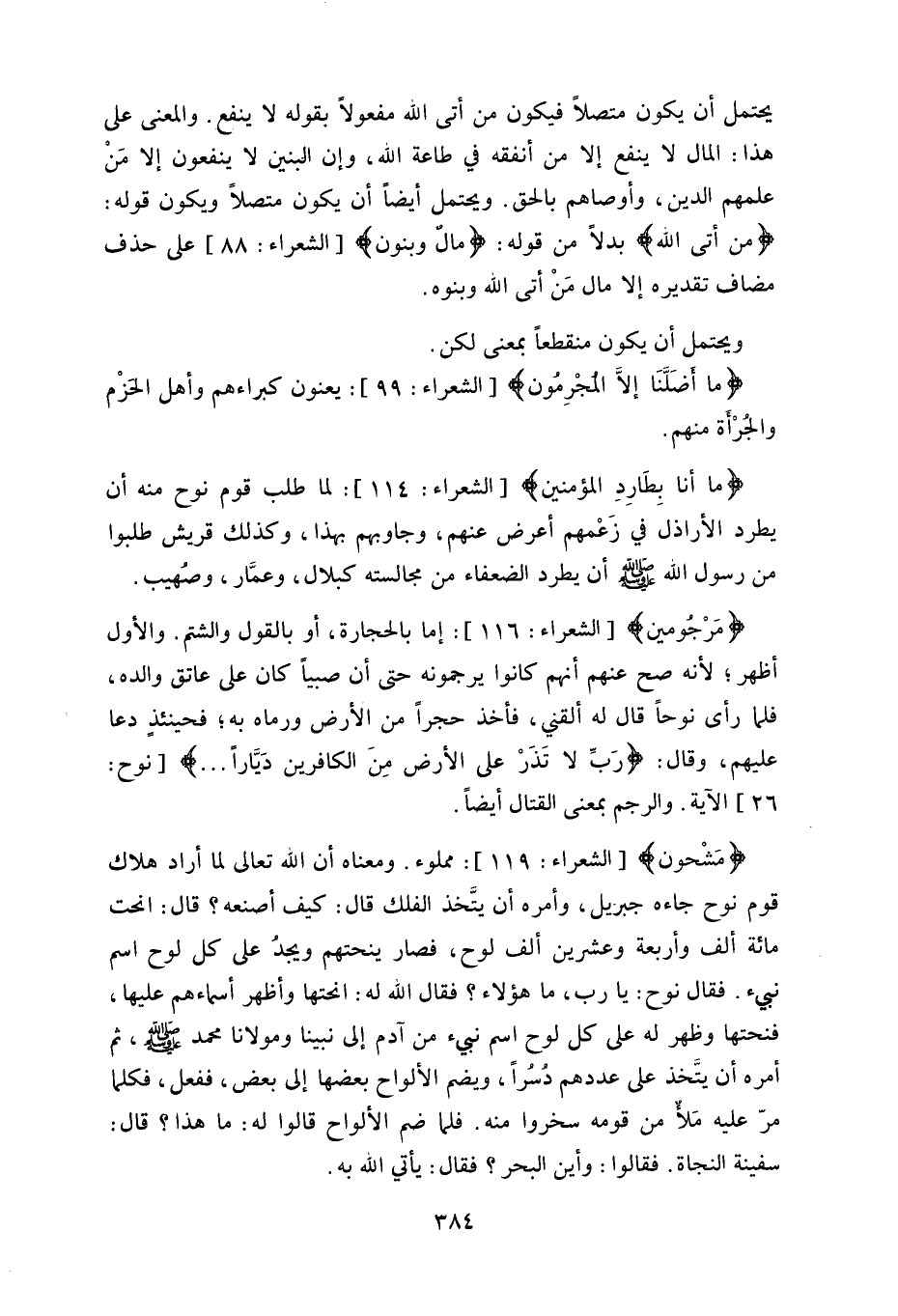 ويحتمل أيضاً أن يكون متصلاً ويكون قوله: (من أتى الله) بدلاً من قوله: (مالٌ وبنون) ، على حذف مضاف تقديره إلا مال مَنْ أتى الله وبنوه.