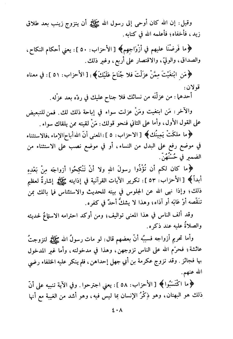 (مَا كَانَ لَكُمْ أَنْ تُؤْذُوا رَسُولَ اللَّهِ وَلَا أَنْ تَنْكِحُوا أَزْوَاجَهُ مِنْ بَعْدِهِ أَبَدًا) . تكرير الآيات القرآنية في إذايته - صلى الله عليه وسلم - إشارةٌ لعظيم