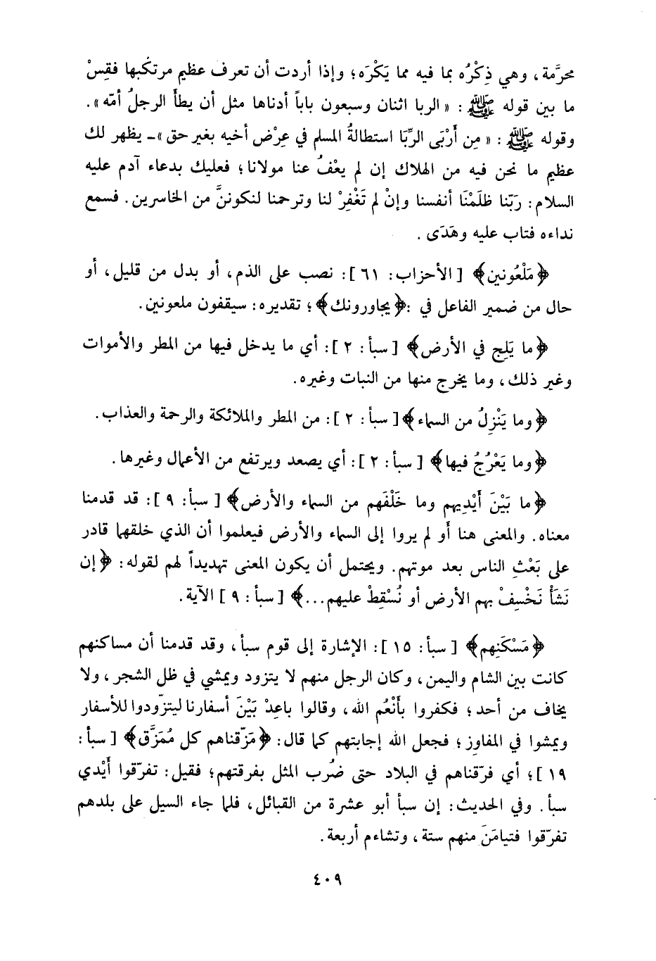 الإشارة إلى قوم سبأ، وقد قدمنا أن مساكنهم