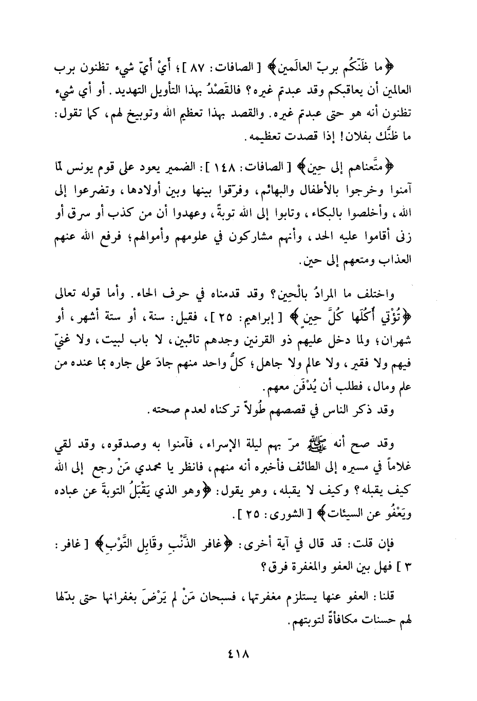 وقد صح أنه - صلى الله عليه وسلم - مرّ بهم ليلة الإسراء، فآمنوا به وصدقوه، وقد لقي غلاماً في مسيره إلى الطائف فأخبره أنه منهم، فانظر يا محمدي مَنْ رجع إلى الله كيف يقبله، وكيف لا يقبله، وهو يقول: (وهو الذي يَقْبَل التوبةَ عن عباده ويَعْفُو عن السيئات) .