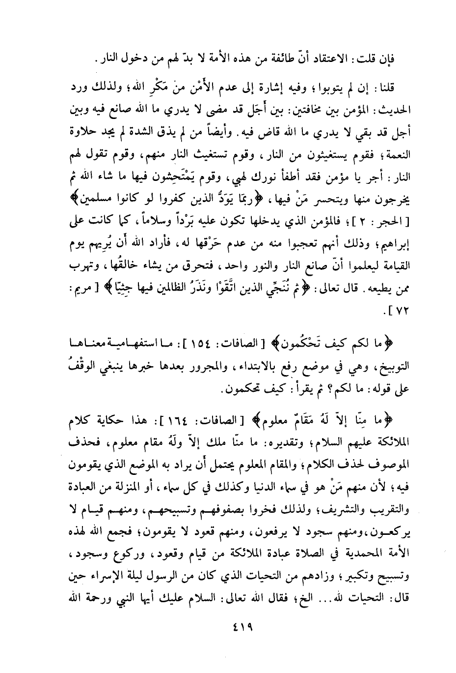فإن قلت: الاعتقاد أنَّ طائفة من هذه الأمة لا بدّ لهم من دخول النار.