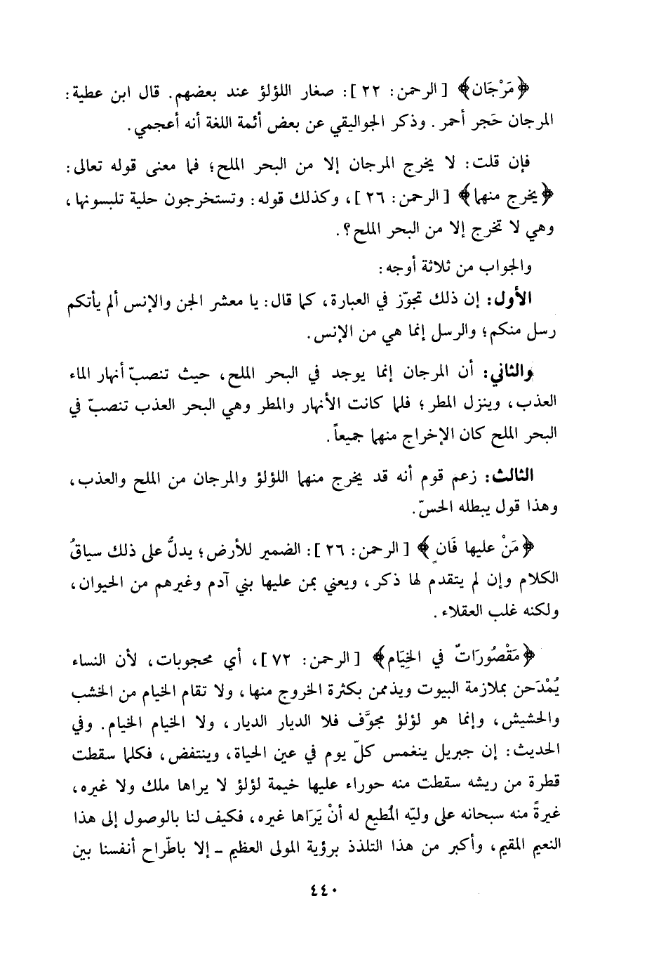 والثاني: أن المرجان إنما يوجد في البحر الملح، حيث تنصبّ أنهار الماء