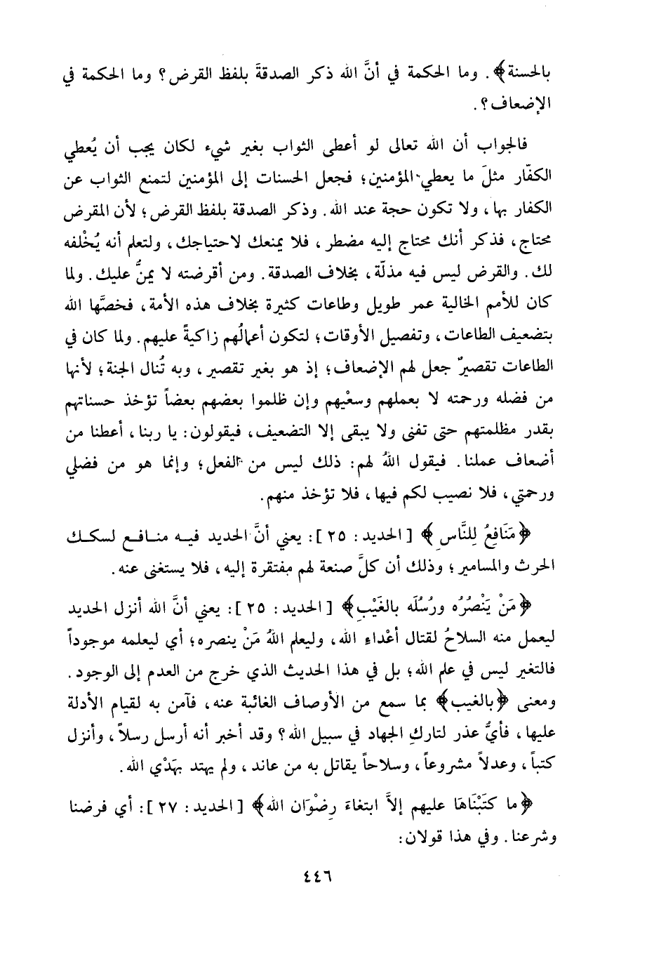 وما الحكمة في أنَّ الله ذكر الصدقةَ بلفظ القرض، وما الحكمة في