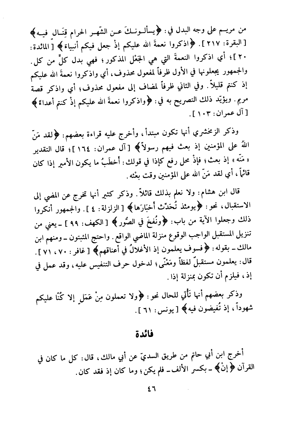 وذكر الزمخشري أنها تكون مبتدأ، وأخرج عليه قراءة بعضهم: (لَقَدْ مَنَّ اللَّهُ عَلَى الْمُؤْمِنِينَ إِذْ بَعَثَ فِيهِمْ رَسُولًا) .