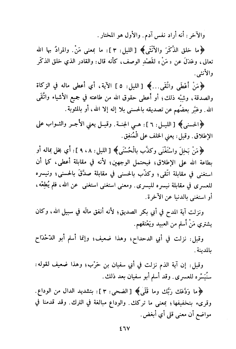 ونزلت آية المدح في أبي بكر الصديق، لأنه أنفق مالَه في سبيل الله، وكان