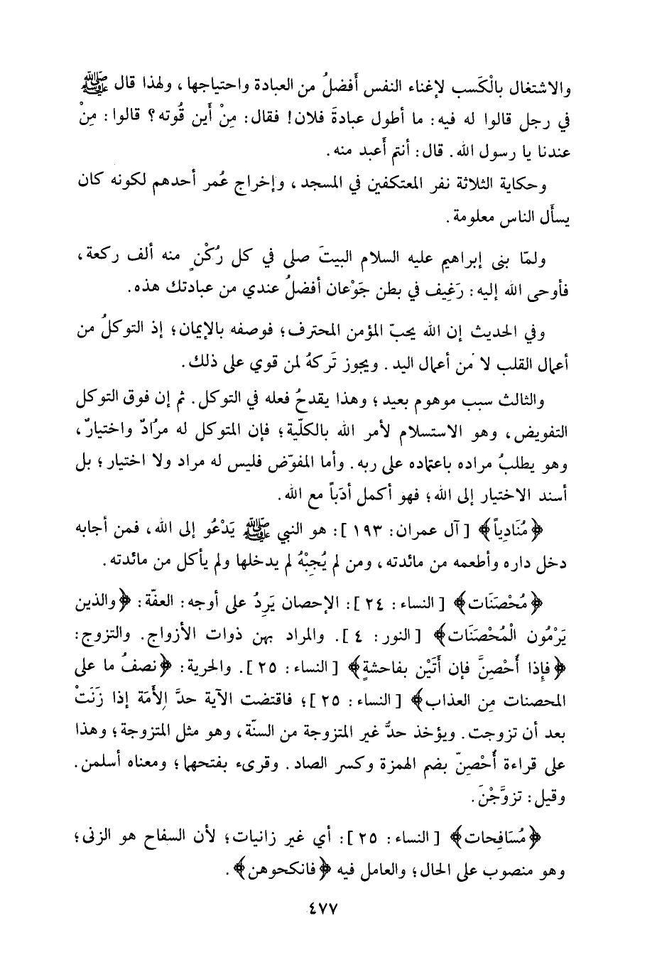 والاشتغال بالْكَسب لإغناء النفس أفضل من العبادة واحتياجها، ولهذا قال - صلى الله عليه وسلم - في رجل قالوا له فيه: ما أطول عبادةَ فلان! فقال: مِنْ أين قوته، قالوا: مِنْ عندنا يا رسول الله.